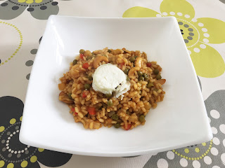 Recipe:- Wash the vegetables and peel the leeks and onions.- Cut them together with the red pepper into small squares.- Drain the peas well.- In a pan with a drizzle of olive oil, sauté the red pepper, onion and leek until soft.- Add the peas and sauté a little more.- Pour the rice and stir well to mix with the vegetables while sautéing a minute more.- Incorporate the broth little by little to the rice until it is at its point.- Add the cashews cut in half crosswise and mix well with the rice.- Serve and place a slice of goat cheese over the rice.