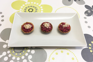 Recipe:- Peel and grate the onion.- Also scratch the beet.- In a frying pan with a little olive oil, sauté on medium heat the onion until it is soft.- Add the beet and leave it for another minute.- Incorporate the cream cheese and stir continuously until it is undone and mix well with the beets and onions.- Grate the popcorn until they become powder.- In another skillet, without any oil, toast the popcorn over medium-low heat.- Place a spoonful of the mixture of beets, onions and cream cheese inside each tartlet.- Sprinkle a little of the popcorn powder on top. Bon appétit!